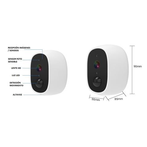 ⢠Lente fija de 4mm con gran visión angular de 120° hasta 30 metros