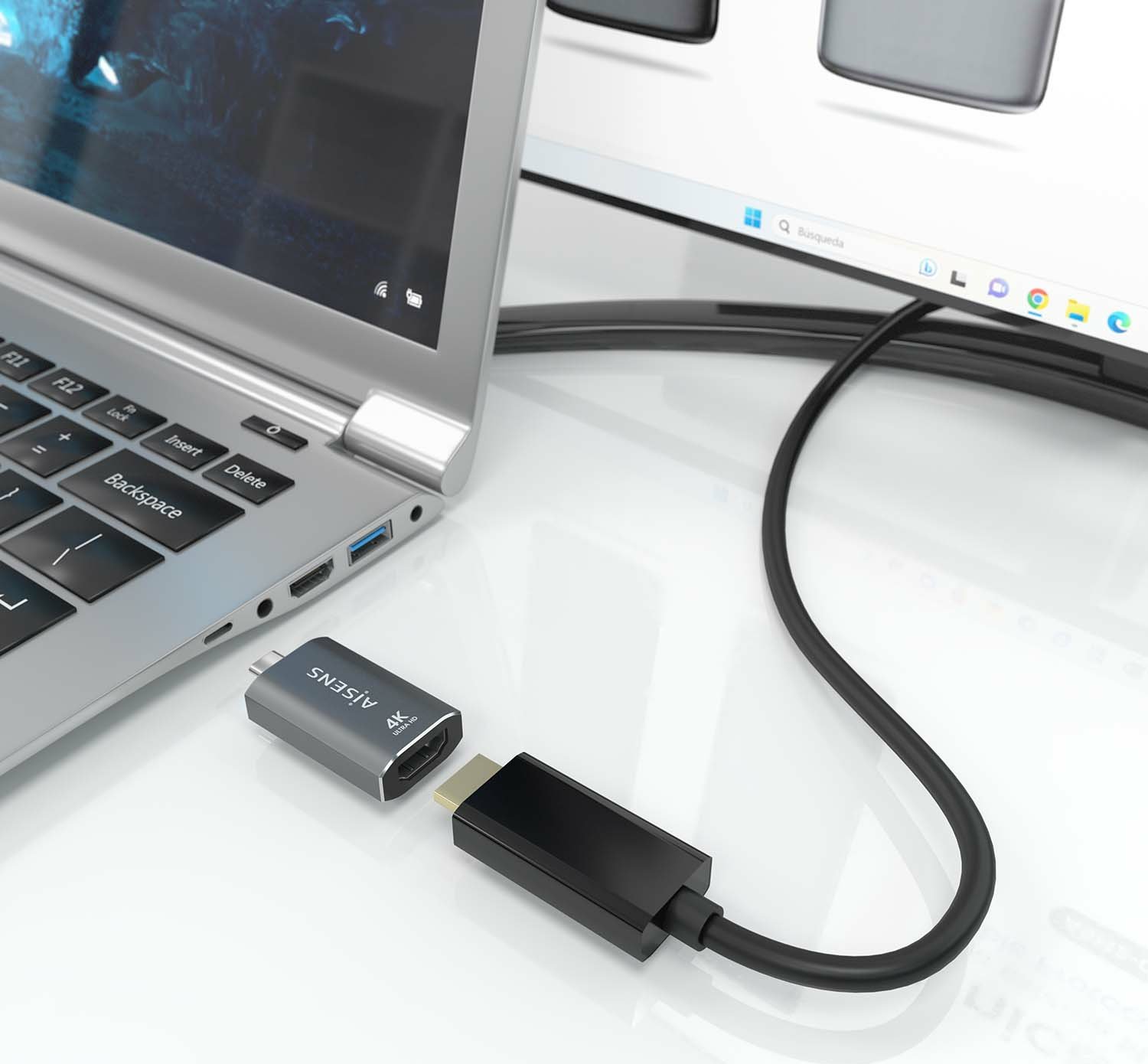 AISENS® – Adaptador Conversor Aluminio USB-C a HDMU 4K©60Hz, USB-C/M-HDMI/H, Gris
