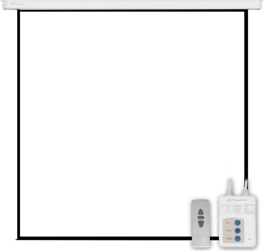 Pantalla electrica videoproyector phoenix pared y techo 135p 2.4mx2.4m posicion ajustable carcasa blanca tela super resistente PHPANTALLA-ELEC240